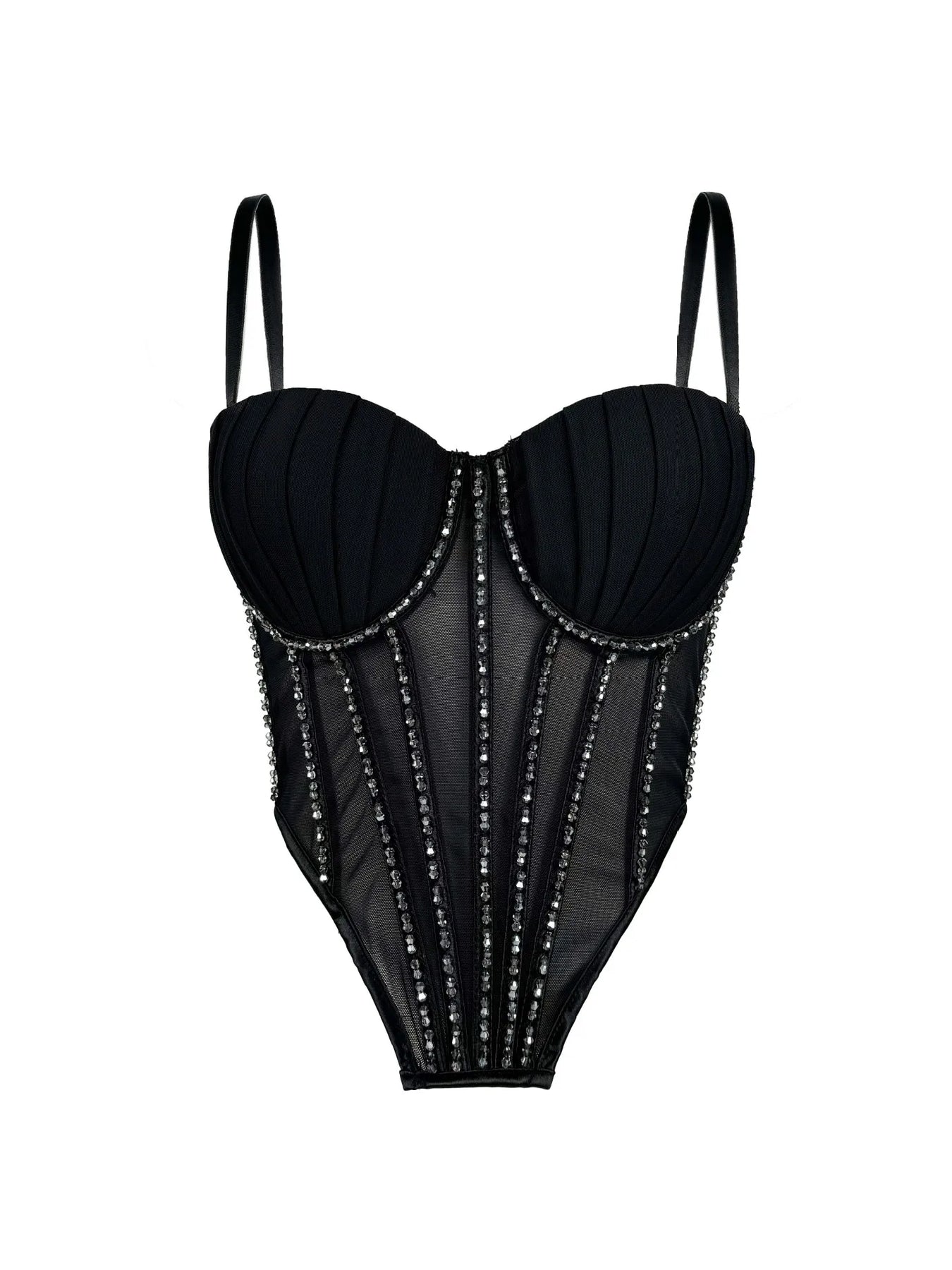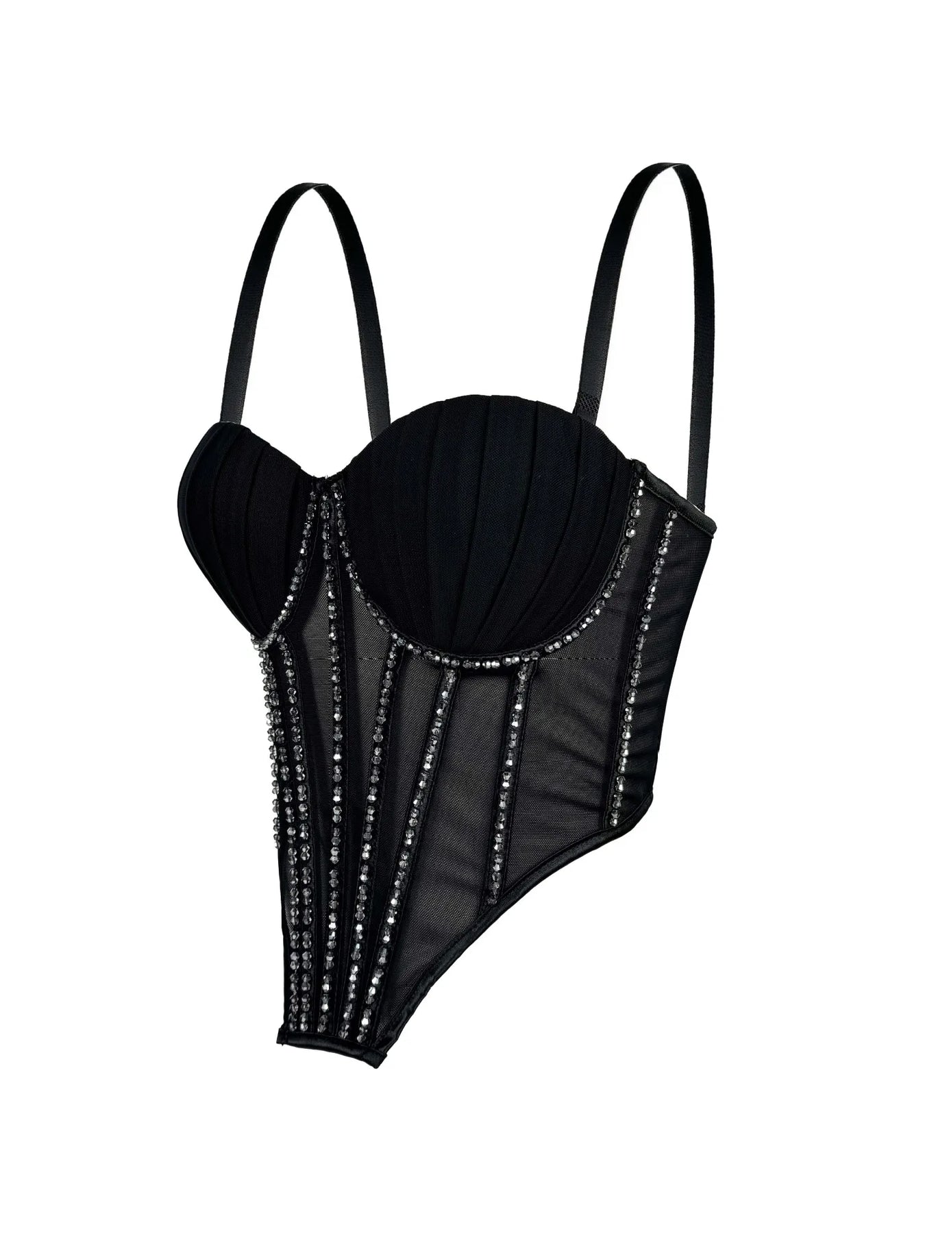 Vexa Crystal Mesh Bra Top – Structured Sparkle Edition